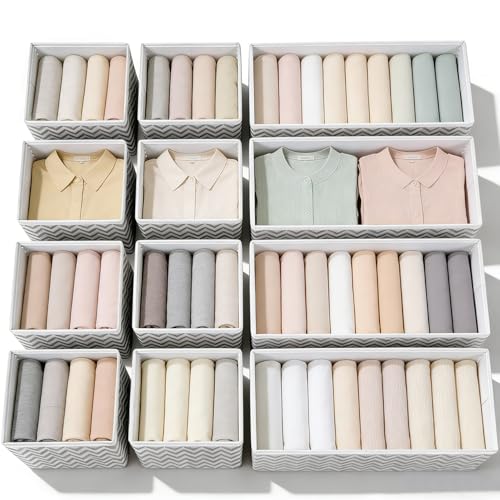 Faltbares Schubladenset für die Organisation von Kleidung in Schlafzimmer, Küche oder Garderobe. Enthält 2 kleine, 2 mittlere und 2 grosse Boxen aus atmungsaktivem Stoff.