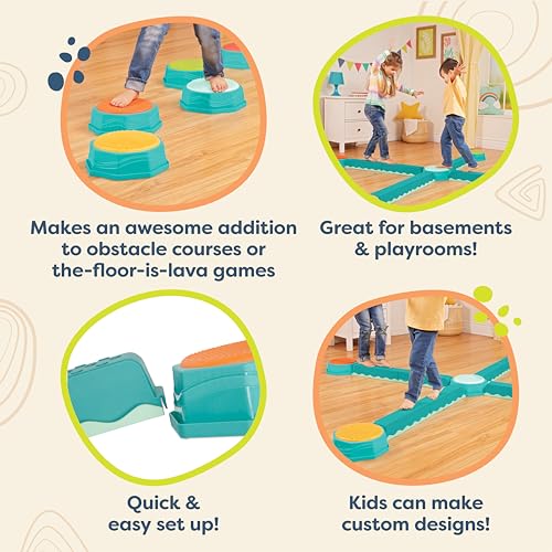 Das B. toys Balancierbalken Set ist ein modulares Spielset aus mehreren Balkenabschnitten und sensorischen Pads, das speziell für Kinder ab 3 Jahren entwickelt wurde.