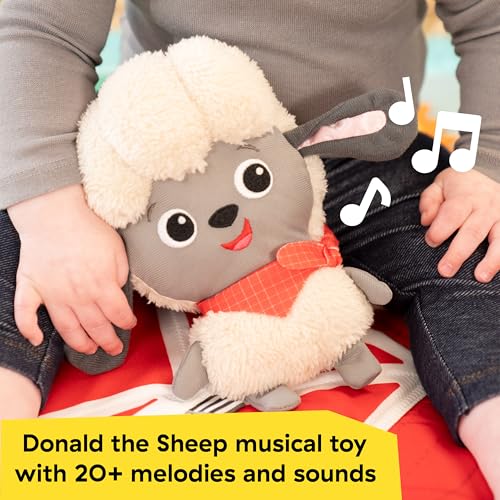 Das Spielzeug kommt mit fünf abnehmbaren Bauernhof-Spielzeugen, darunter ein Sonnenspiegel, ein Saatgutpaket, fünf Tierkarten, eine Traktorrassel und das musikalische Plüschschaf Donald, das mit 20 Melodien und Geräuschen begeistert. Diese Spielzeuge regen die Sinne des Babys an und fördern die Feinmotorik sowie das Lernen von Ursache und Wirkung, während das Baby nach den Spielzeugen greift, sie festhält und schüttelt.
