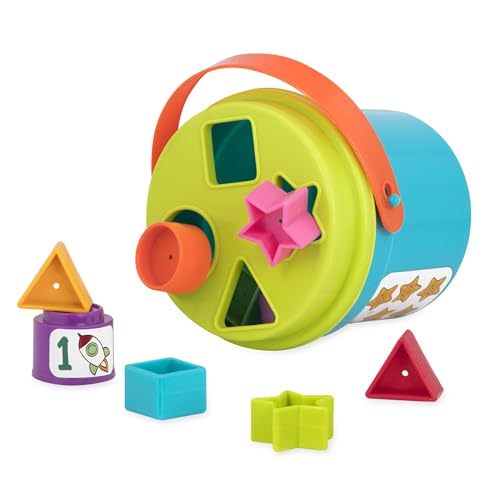 Das Battat Nesting Sortierset ist ein 19-teiliges Spiel- und Lernset mit Stapelbechern und Formen. Es enthält 10 Becher, 8 Formen sowie einen Form-Sortierer-Deckel und richtet sich an Kleinkinder ab 18 Monaten.
