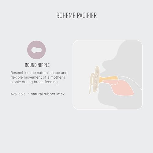 Die BIBS Boheme Schnuller kombinieren skandinavisches Design mit natürlicher Funktionalität. Inspiriert vom Boho-Stil und der Natur, bieten sie eine runde, klassische Saugerform, die dem Stillen nachempfunden ist – ideal zur Unterstützung des natürlichen Saugreflexes von Neugeborenen.