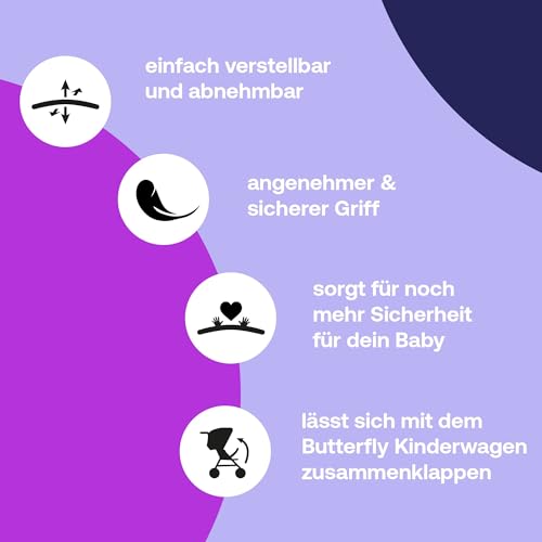 Der Bugaboo Butterfly vereint Mobilitaet und Komfort in einem besonders leichten City- und Reise-Buggy. In einer Sekunde einhaendig gefaltet, passt er mit seinen handgepaeckfreundlichen Massen in viele Gepaeckfaecher (bitte Airline-Bestimmungen pruefen) und laesst sich dank Schultergurt bequem tragen.