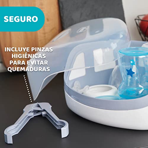 Der Chicco Sterilisator für die Mikrowelle bietet eine einfache und schnelle Lösung zur Sterilisation von Babyflaschen und anderen kleinen Gegenständen. In nur 3 Minuten bei 1200W werden bis zu 5 Flaschen gründlich sterilisiert, was ihn zu einem unverzichtbaren Helfer für frischgebackene Eltern macht.