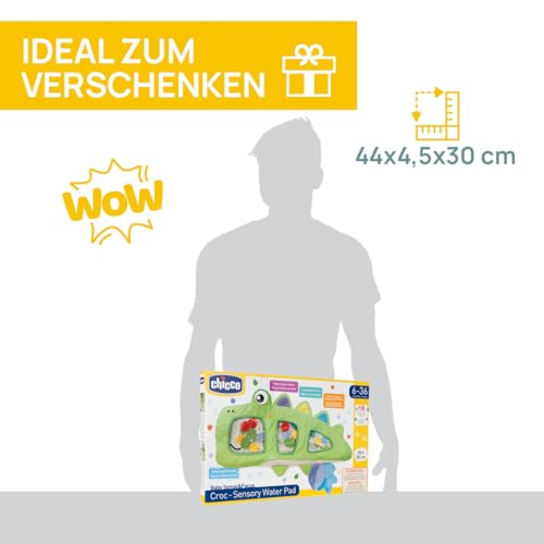 Die Chicco Sensory Mat Krokodil ist eine vielseitige Wasserspielmatte zur sensorischen Stimulation und frühkindlichen Entwicklung. Sie wurde speziell für Babys und Kleinkinder im Alter von 6 bis 36 Monaten entwickelt und kombiniert Spiel, Bewegung und Lernen auf spielerische Weise.