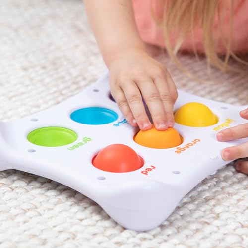 Das Fat Brain Dimpl Duo ist ein interaktives Sinnes- und Lernspielzeug für Kleinkinder. Es kombiniert bunte Farben mit einem «Push-and-Pop»-Mechanismus und bietet einfache, taktile Spielerlebnisse.