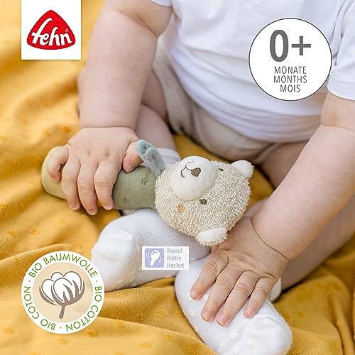 Der Fehn Stabgreifling Bär ist ein weiches Stoffspielzeug in Bärenform mit integrierter Rassel. Er wurde für Babys ab Geburt entwickelt und eignet sich zum Greifen und Kuscheln.