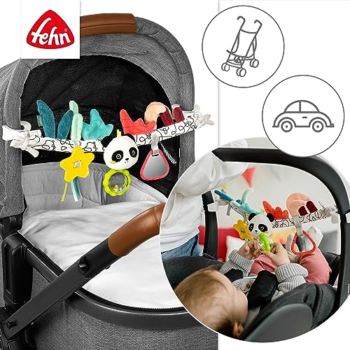Die Fehn Kinderwagenkette Panda ist das perfekte Spielzeug für Babys ab 0+ Monaten und sorgt unterwegs für Spielspaß und sensorische Förderung. Mit verschiedenen haptischen Elementen wie einer Rassel, Quietsche, Raschelpapier, Spiegel und einem Beißring regt sie die Sinne des Babys an und fördert die Hand-Auge-Koordination.