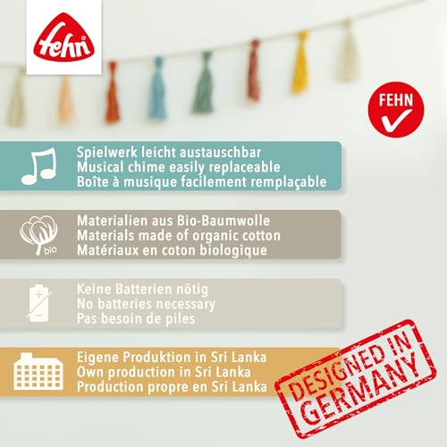 Die Fehn Mini-Spieluhr Schaf aus der fehnNATUR® Kollektion ist ein sanfter Schlafbegleiter für Babys ab Geburt. Mit der beruhigenden Melodie „Guten Abend, gut’ Nacht“ (Brahms Wiegenlied) schenkt sie Geborgenheit und unterstützt entspanntes Einschlafen – ob zu Hause oder unterwegs. Die weichen Materialien aus Bio-Baumwolle (kbA) machen das Kuscheln besonders angenehm. Dank praktischer Befestigungsbänder lässt sich das Schaf einfach am Bettchen, Kinderwagen oder an der Babyschale anbringen.