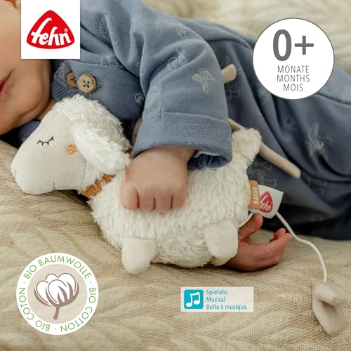 Die Fehn Mini-Spieluhr Schaf aus der fehnNATUR® Kollektion ist ein sanfter Schlafbegleiter für Babys ab Geburt. Mit der beruhigenden Melodie „Guten Abend, gut’ Nacht“ (Brahms Wiegenlied) schenkt sie Geborgenheit und unterstützt entspanntes Einschlafen – ob zu Hause oder unterwegs. Die weichen Materialien aus Bio-Baumwolle (kbA) machen das Kuscheln besonders angenehm. Dank praktischer Befestigungsbänder lässt sich das Schaf einfach am Bettchen, Kinderwagen oder an der Babyschale anbringen.