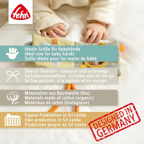 Der Materialmix aus Plüsch, Musselin, Strick, Frottee, Cord und Nicki – alles aus Baumwolle – lädt zum Fühlen, Spielen und Kuscheln ein. Das Fehn Stoffbuch Hund Natur ist nicht nur ein tolles Spielzeug, sondern auch ein treuer Begleiter, der die Fantasie anregt und die Kleinen in ihrer Entwicklung unterstützt. Das Buch ist zudem waschbar bei 30°C, was die Pflege erleichtert und für Hygiene sorgt.