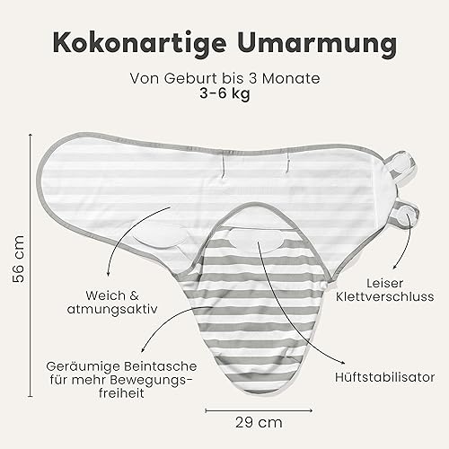 CuddleBug 3er-Pack Pucksack Baby 0-3 Monate mit Klettverschluss