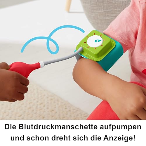 Mit der Fisher-Price Arzttasche können kleine Nachwuchsärzte spannende Rollenspiele erleben und ihre Patienten gesund pflegen. Das Set enthält sieben kindgerechte Spielinstrumente, die realistische Arztbesuche nachahmen lassen – vom Abhören mit dem Stethoskop bis zum Fiebermessen mit dem Thermometer.