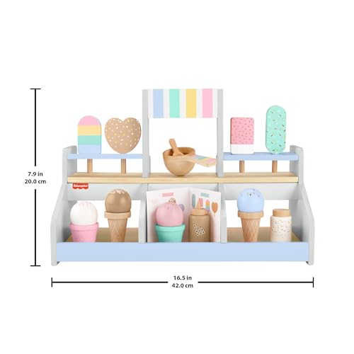 Das Fisher-Price Eisdielen-Spielset aus Holz bringt sommerlichen Spaß ins Kinderzimmer! Kleine Verkäuferinnen und Verkäufer können mit diesem detailreichen Set ihre eigene Eis-Theke eröffnen und Freunde, Geschwister oder Eltern mit köstlichen Eiskreationen verwöhnen.