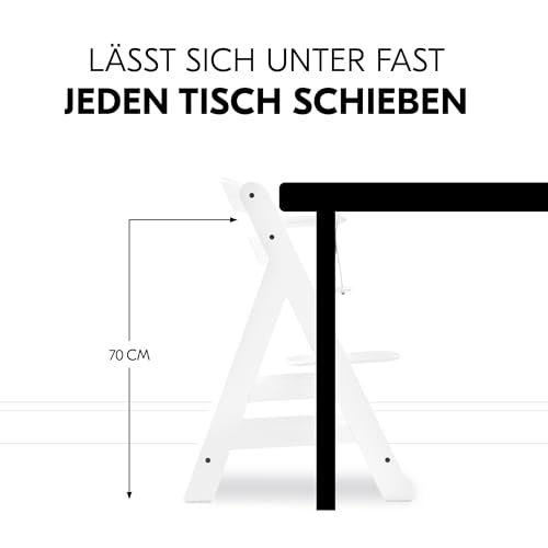 hauck Alpha XXL Hochstuhl-Set ab Geburt – Premium Neugeborenenaufsatz mit 5-Punkt-Gurt, Tablett, Sitzverkleinerer – Holzhochstuhl mit Liegefunktion – Weiss