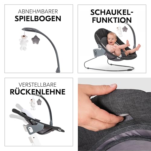 hauck Alpha Plus Hochstuhl Newborn Set mit Wippe – Holzhochstuhl ab Geburt – mit Neugeboreneneinsatz & Sitzbezug – Grau