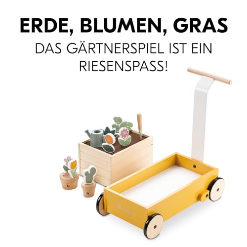 Doch der Lauflernwagen Learn to Walk ist nicht nur ein praktisches Hilfsmittel für das Laufenlernen, sondern auch ein kreatives Spielzeug. Er wird mit verschiedenen Zubehörteilen geliefert, darunter eine abnehmbare Box, eine Schaufel, eine Gießkanne und zahlreiche Blumen, die Ihr Kind zum fantasievollen Spielen anregen. Egal, ob Ihr Kind ein Beet anlegt oder seine Lieblingspuppen transportiert – die Einsatzmöglichkeiten sind vielfältig und bieten stundenlangen Spielspaß.