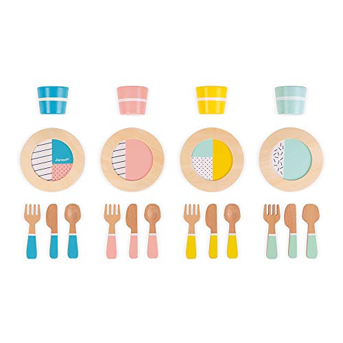 Das Janod Holz-Service Set ist ein liebevoll gestaltetes Küchenspielzeug, das Kinder ab 3 Jahren spielerisch an Tischkultur und soziale Rollenspiele heranführt. Mit seinen 20 robusten Elementen in skandinavisch inspirierten Farben eignet sich das Set ideal zum Nachspielen von Mahlzeiten, zur Förderung der Selbstständigkeit und zur Entwicklung von Feinmotorik.