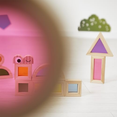 Das Set umfasst 12 durchscheinende geometrische Blöcke und 6 bedruckte Holzblöcke, die es den Kindern ermöglichen, lustige Tiere und Figuren zu kreieren. Durch das Spielen mit diesen Blöcken lernen die Kinder nicht nur Formen und Farben kennen, sondern auch die Grundlagen der räumlichen Vorstellung. Die enthaltenen Musterkarten bieten dabei eine tolle Inspirationsquelle, um die Kreativität der Kinder weiter zu entfalten.