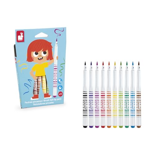 Diese Pinselstifte von Janod sind ein Set von 10 abwaschbaren Filzstiften mit Pinselspitze für Kinder. Die Stifte ermöglichen ein Malen wie mit einem Pinsel und sind für kreative Freizeitaktivitäten konzipiert.