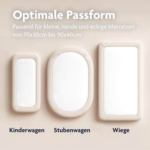 Dieses Spannbettlaken ist optimal für Matratzen mit den Abmessungen von 70 x 37 cm bis 90 x 40 cm geeignet und garantiert eine perfekte Passform. Der umlaufende Gummizug sorgt dafür, dass das Laken sicher auf der Matratze sitzt und keine Falten wirft, was zusätzlich für einen angenehmen Schlafkomfort sorgt.