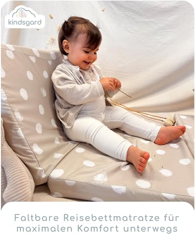 Die Kindsgard foldsly Reisebettmatratze ist der ideale Begleiter für unterwegs. Dank ihrer klappbaren Konstruktion und der praktischen Transporttasche lässt sie sich einfach verstauen und bequem transportieren – ob für die Ferienreise, den Besuch bei den Grosseltern oder einfach zum mobilen Einsatz zu Hause.