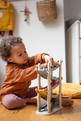 Die Kindsgut Murmelbahn ist ein hochwertiges Motorik-Spielzeug aus Holz, das speziell für Kinder ab 24 Monaten entwickelt wurde. Mit 4 bunten Autos und einer stabilen Bahn bietet sie stundenlangen Spielspaß und fördert gleichzeitig Geschicklichkeit und kombinatorische Fähigkeiten. Das schlichte Design in dezenten Farben passt perfekt zu modernen Einrichtungsstilen und macht die Murmelbahn zu einem stilvollen Hingucker im Kinderzimmer.