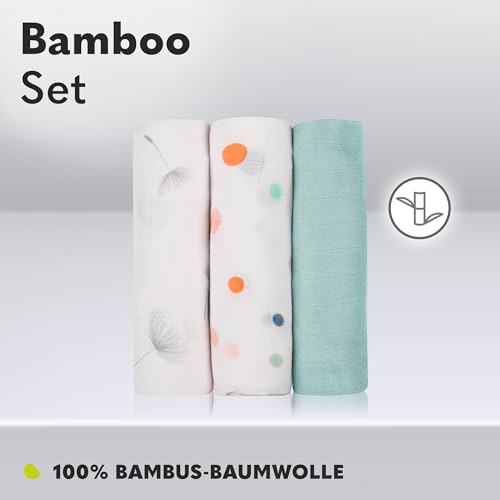Lionelo Bambus Mullwindeln 3er-Set – Dot, 70 x 70 cm