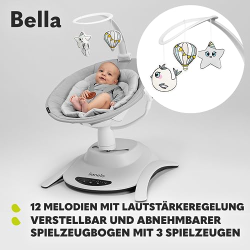 Lionelo Bella Elektrische Babywippe 360° bis 9 kg mit 5 Schaukelstufen – Grau
