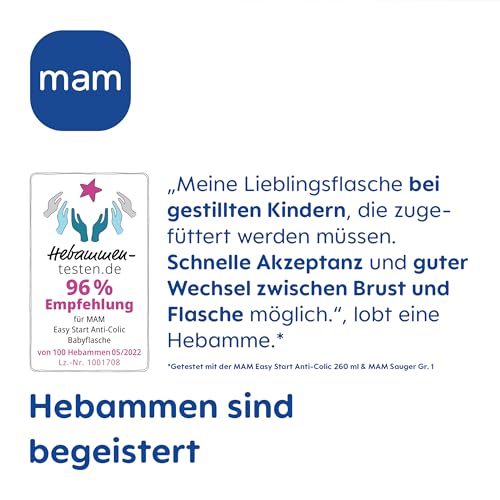 Empfohlen von Experten: 96 % der Hebammen und 97 % der Mütter empfehlen die MAM Easy Start Babyflasche