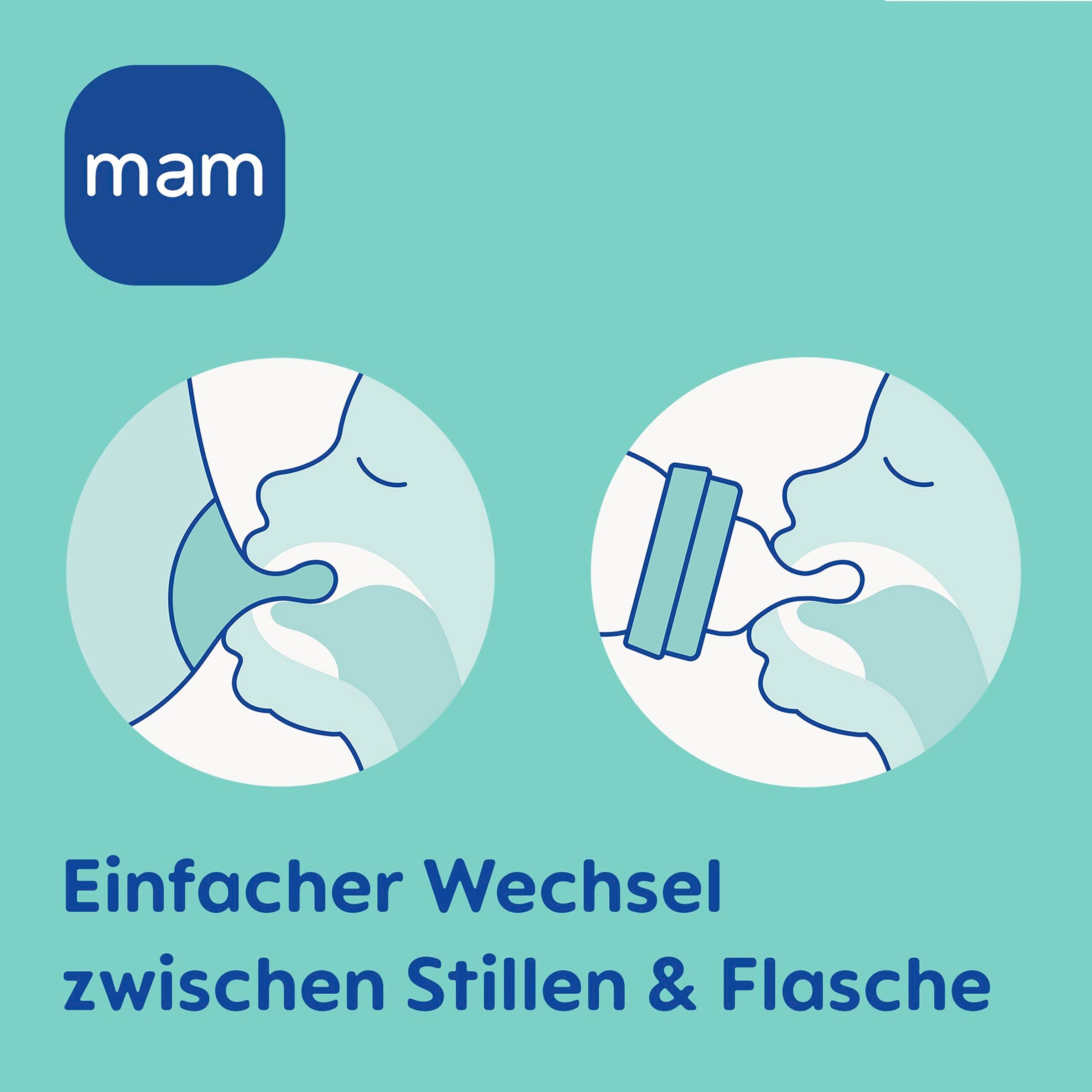 Die MAM SkinSoft Silikonsauger in Größe 1 sind der Mutterbrust nachempfunden und werden von 94 % der Babys instinktiv akzeptiert. Sie ermöglichen ein stillfreundliches, vertrautes Trinken. Dank weiter Öffnungen lassen sich die Flaschen leicht befüllen und reinigen, während die Schutzkappe für auslaufsicheren Transport sorgt.
