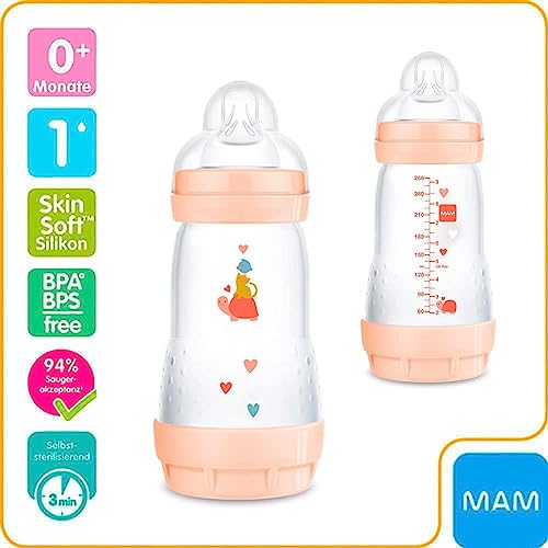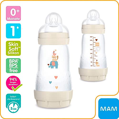 2 x MAM Anti-Colic Flaschen à 260 ml – mit integriertem Bodenventil für gleichmässigen Trinkfluss und weniger Luftschlucken