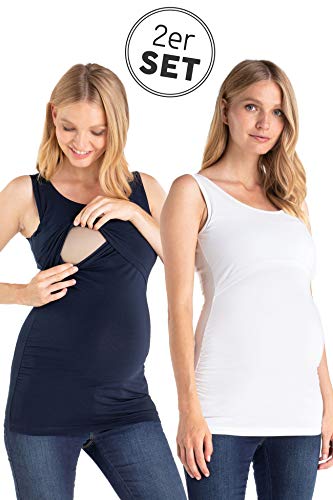 Das praktische Doppelpacks enthält zwei hochwertige Stilltops in den Farben Blau und Weiß, die sich hervorragend als Basics in deiner Umstandsgarderobe eignen. Die diskrete Stillöffnung ermöglicht es dir, dein Baby jederzeit zu stillen, ohne das Top vollständig ausziehen zu müssen. Einfach die doppelten Stofflagen auseinander schieben und schon hast du schnellen Zugang zur Brust – eine praktische Lösung für den Alltag.