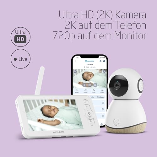 Das Maxi-Cosi See Pro Babyphone verbindet einen sicheren 5″-Elternbildschirm (FHSS, 720 px) mit Ultra-HD (2K)-Livebild auf dem Smartphone. Dank CryAssist (Schreierkennung & -übersetzung, 6 Monate inklusive) verstehst du schneller, was dein Baby braucht. Automatische Bewegungserkennung & -verfolgung, Nachtsicht, Pan/Tilt/Zoom sowie Temperatur- & Luftfeuchtigkeitsmessung sorgen für zuverlässige Überwachung – zu Hause und unterwegs.