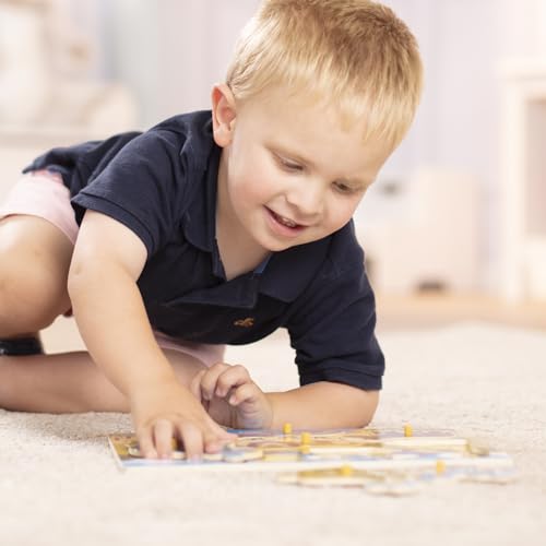 - Kindgerechtes Design: Abgerundete, geschliffene Kanten und Stöpsel an jedem Teil erleichtern das Greifen und Einsetzen der Puzzleteile.