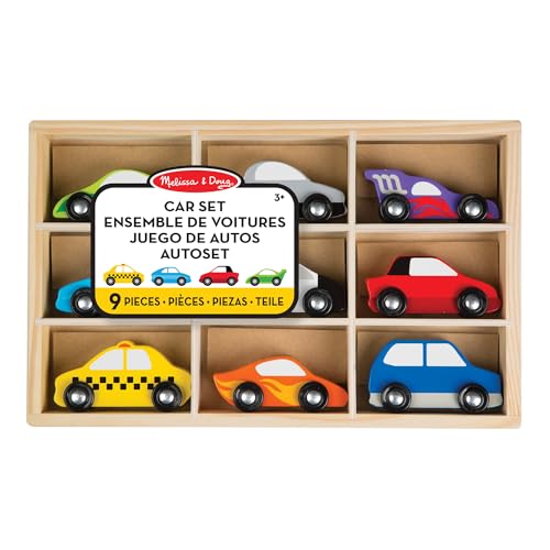 9-teiliges Holzset: mit Autos, Rennwagen, Minivan, Taxi, Polizei- & Lastwagen