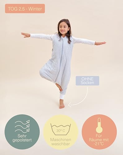 Ganzjahres-Schlafsack mit Füßen, 2.5 TOG, ideal für Babys, die sich viel bewegen.