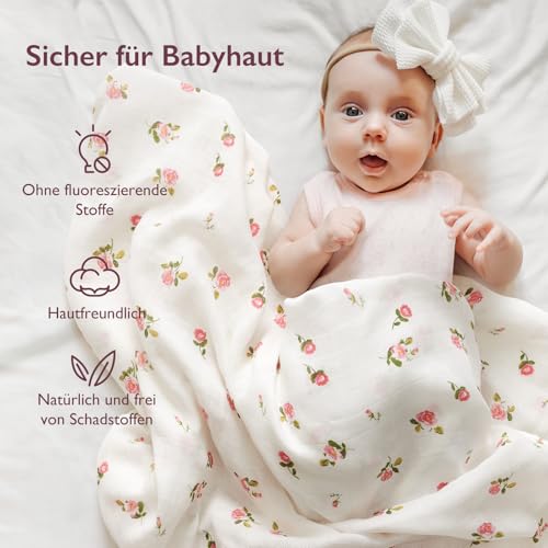 Eine Wickeldecke ist ein unverzichtbares Accessoire für Ihr neugeborenes Baby. Babys fühlen sich in weichen, bequemen Musselintüchern wohl, da das Pucken ein Gefühl der Geborgenheit vermittelt, das an die Zeit im Mutterleib erinnert. Das Wickeln kann dazu beitragen, dass Ihr Baby ruhiger schläft und sich sicherer fühlt. Darüber hinaus können die Tücher vielseitig eingesetzt werden, sei es als Babydecke, Spucktuch, Stilldecke oder sogar als Sonnenschutz für den Kinderwagen.