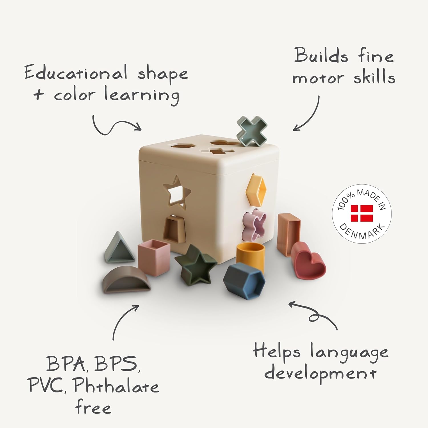 Die mushie Shape Sortierbox ist ein pädagogisch wertvolles Sortierspielzeug, das speziell für Kinder ab 10 Monaten entwickelt wurde. Mit 12 bunten Formen in sanften Farben fördert das Spielzeug spielerisch die Hand-Auge-Koordination, die Konzentrationsfähigkeit und das Formenverständnis. Die Formen werden den entsprechenden Aussparungen zugeordnet, was das logische Denken und die motorischen Fähigkeiten des Kindes stärkt. Hergestellt aus hochwertigem Polypropylen in Dänemark, ist das Spielzeug sicher, langlebig und leicht zu reinigen.