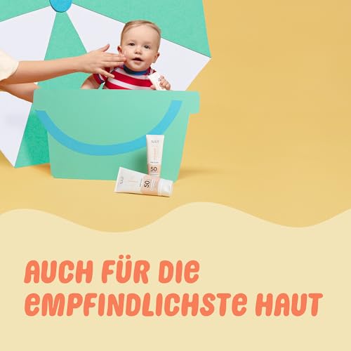 Die Naïf Sonnencreme mit LSF 50 schützt empfindliche Baby- und Kinderhaut zuverlässig vor schädlicher UV-Strahlung – mit mineralischem Filter, ganz ohne Parfum, Mikroplastik oder chemische UV-Filter. Die Creme ist wasserfest, dermatologisch getestet und besonders sanft zur Haut – ideal auch für Neugeborene und (werdende) Mütter.