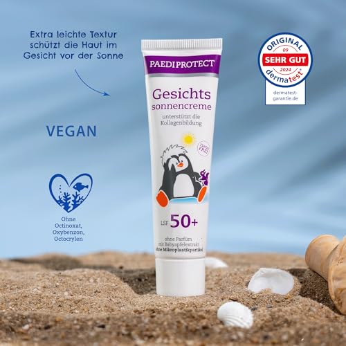 Die PAEDIPROTECT Gesichtssonnencreme LSF 50+ bietet einen sehr hohen, zuverlässigen Schutz vor schädlicher UV-A- und UV-B-Strahlung – das ganze Jahr über, für Kinder und Erwachsene. Die parfümfreie, dermatologisch getestete Formel wurde speziell für empfindliche Gesichtshaut entwickelt und eignet sich auch für hochsensible Hauttypen. Die leichte, nicht fettende Textur zieht schnell ein, klebt nicht und hinterlässt keinen weißen Film.