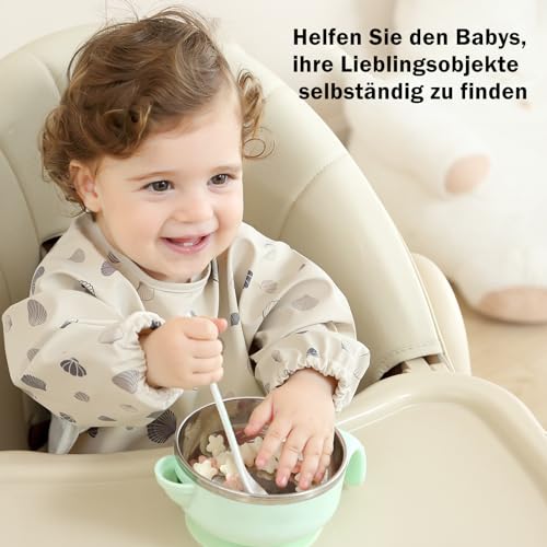 Praktisches Lätzchen für Babys aus weichem und hautfreundlichem Material. Wasserdicht, leicht zu reinigen und maschinenwaschbar. Ideal für Baby Led Weaning (BLW) und schützt die Kleidung während des Fütterns. Für Babys von 6 Monaten bis 3 Jahren.