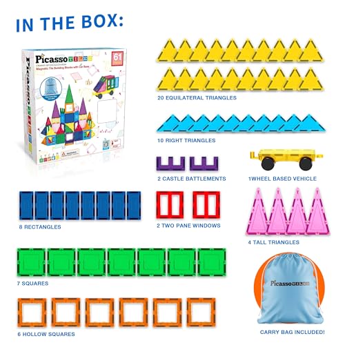 Entdecken Sie die kreativen Möglichkeiten mit den PicassoTiles Magnet-Bausteinen, Modell PC61. Dieses innovative Konstruktionsspielzeug fördert das Lernen und die Kreativität bei Kindern ab 3 Jahren. Die bunten Bausteine sind nicht nur optisch ansprechend, sondern auch eine hervorragende Möglichkeit, das Verständnis für geometrische Formen und Grundprinzipien der Physik zu entwickeln.