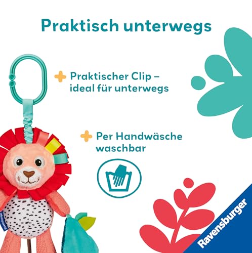 Der Ravensburger Play+ Rassel-Löwe ist ein liebevoll gestaltetes Babyspielzeug, das sinnesfördernde Elemente mit kuscheligem Komfort kombiniert. Mit einer integrierten Rassel, einem praktischen Clip zur Befestigung und einer sanften Zahnungshilfe begleitet dieser Löwe Babys in ihren ersten Lebensmonaten.