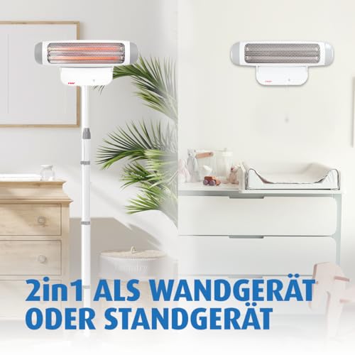 Dank seines 2in1-Designs kann der FeelWell sowohl als Wandgerät als auch als Standheizstrahler eingesetzt werden. Dies ermöglicht eine flexible Installation, die sich optimal an Ihre räumlichen Gegebenheiten anpasst. Mit dem praktischen Zugschalter können Sie zwischen zwei Heizstufen wählen – 400W und 800W – und somit die Wärme genau nach Bedarf regulieren.