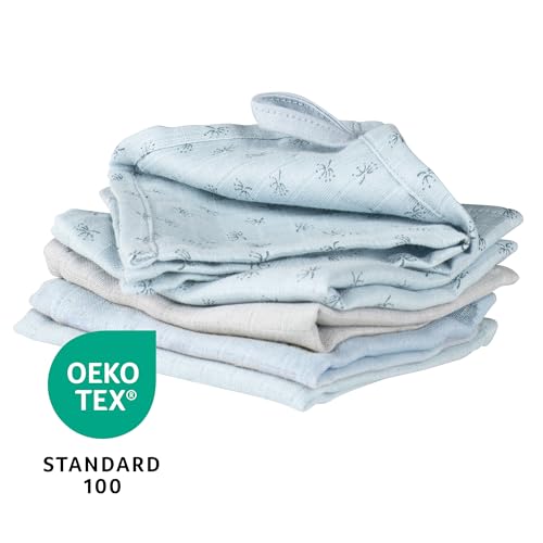 Produktbeschreibung – roba Organic 5er Set Waschlappen ‚Lil Planet‘ Hellblau/Sky