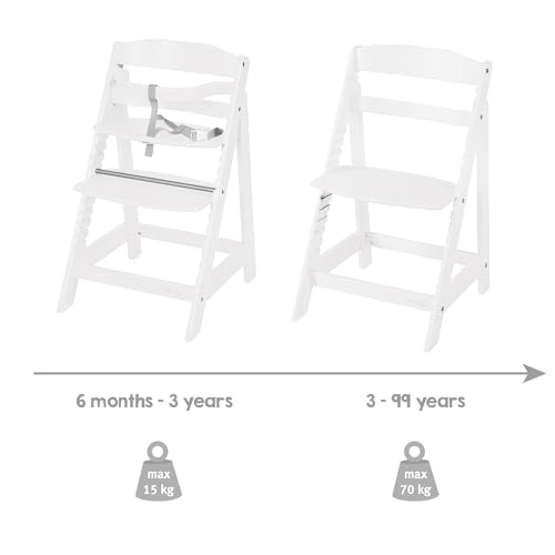 Der roba Sit Up III wächst mit deinem Kind mit und sorgt dank verstellbarer Sitz- und Fußplatte für eine ergonomische Haltung an jedem Tisch. Im Kleinkindalter bieten Sicherheitsbügel und Gurtsystem zusätzlichen Halt; später nutzt ihr den Stuhl ohne Bügel als robusten Kinder-/Jugendstuhl. Die standfeste Holzkonstruktion ist pflegeleicht und auf langlebige Nutzung ausgelegt.