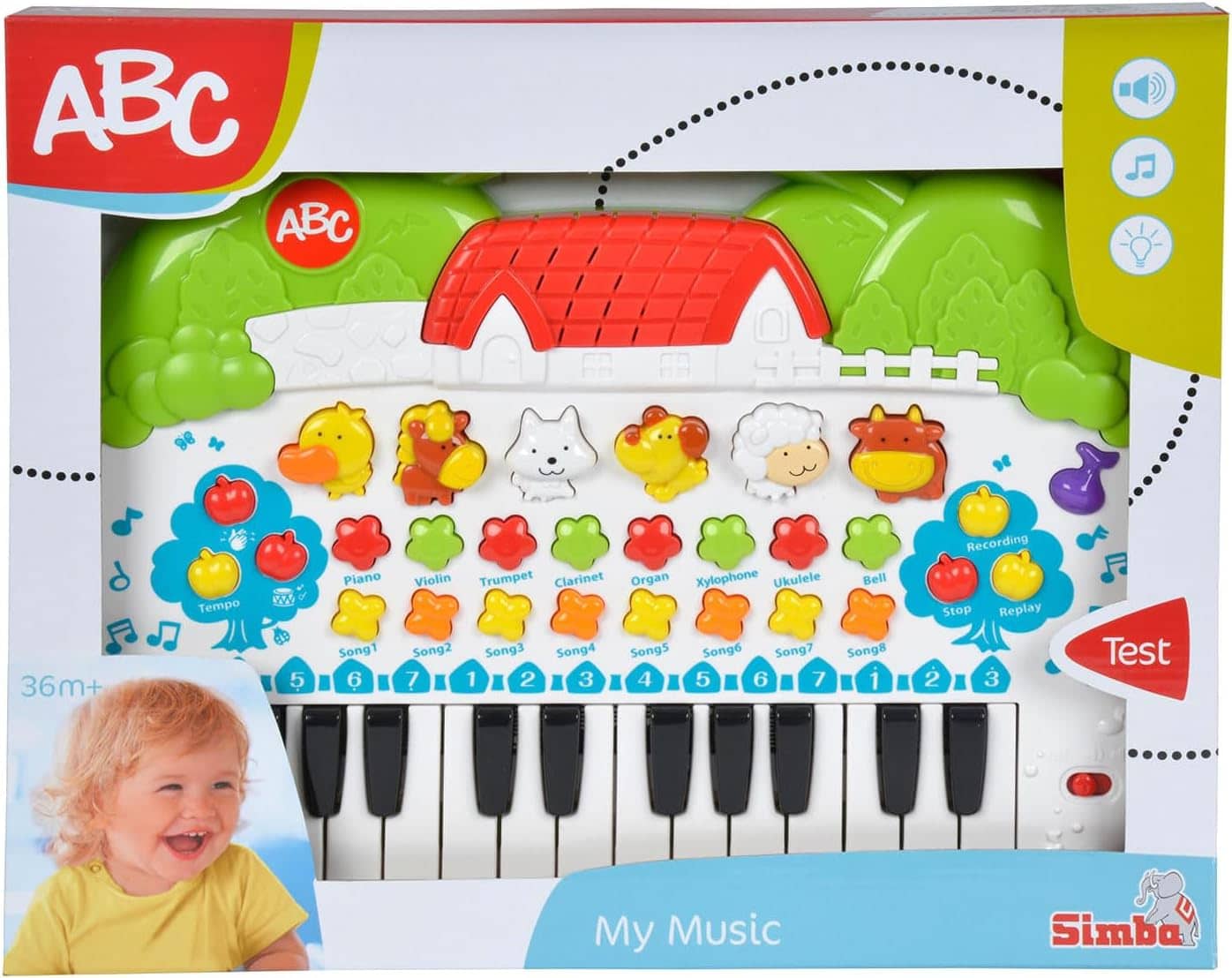 Das Simba ABC Tier-Keyboard bietet spielerischen Musikspaß und fördert gleichzeitig die motorischen Fähigkeiten, das Rhythmusgefühl und die akustische Wahrnehmung von Kindern. Mit bunten Tiermotiven und zahlreichen Sounds und Melodien lädt es zum Entdecken, Musizieren und Lernen ein. Ideal für Kinder ab 3 Jahren geeignet, sorgt dieses fröhlich-bunte Keyboard für musikalische Früherziehung und jede Menge Spielspaß.