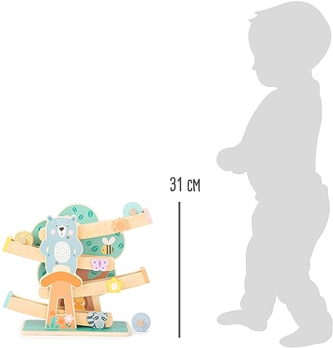 Diese liebevoll gestaltete Kugelbahn sorgt fuer rasanten Rollspass und foerdert nebenbei Motorik und Aufmerksamkeit. In sanften Pastellfarben gehalten und mit niedlichen Waldmotiven versehen, wird sie schnell zum Hingucker im Kinderzimmer.