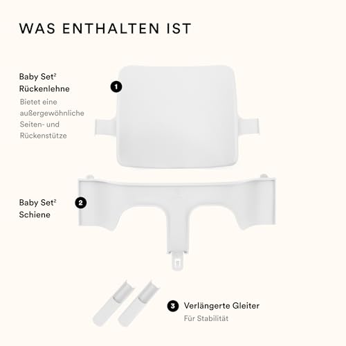 Das Stokke Tripp Trapp Baby Set 2 verwandelt deinen Tripp Trapp in einen komfortablen Hochstuhl für die Zeit vom Sitzbeginn bis ca. 3 Jahre. Die hohe Rücken- und Seitenführung unterstützt eine ergonomische Sitzhaltung und gibt zusätzlich Halt, während dein Kind eigenständig Essen und Tischaktivitäten entdeckt. Das Baby Set 2 lässt sich werkzeuglos montieren und ist spülmaschinengeeignet – ideal für den Familienalltag.