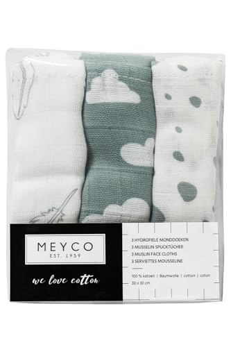 Meyco Mull/Musselin Spucktücher 3er Set, FEDERN-WOLKE-DOTS